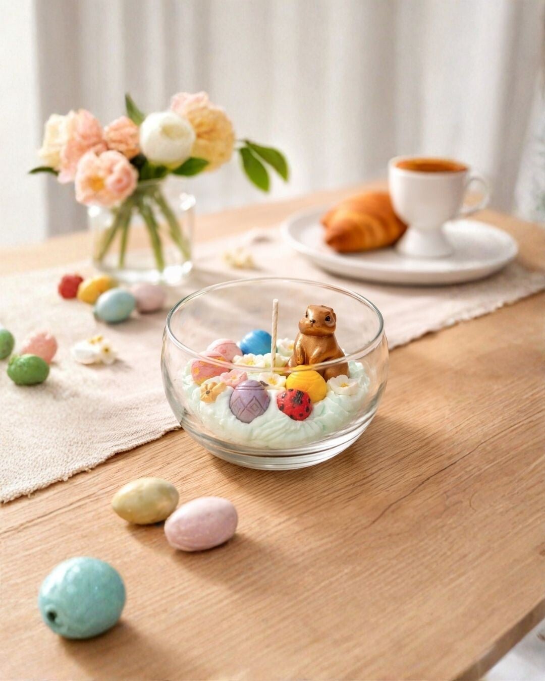 reng de magie van Pasen en de zachtheid van de lente samen met de Dolce Pasqua Primavera Globe van Dolce Lumini. Deze unieke, handgemaakte globe kaars is een ware blikvanger in elk interieur. In het transparante glas ontvouwt zich een verfijnd lentes tafereel met delicate bloemen, kleurrijke paaseitjes en een schattig paashaasje – alsof je een klein stukje lente in huis haalt.